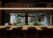 客室の扉を開けると視線の先には格子や鉛の壁などが配され、空間の全貌が見えない、伝統的な京町家を思わせるプライベート感の高いつくりとなっています。