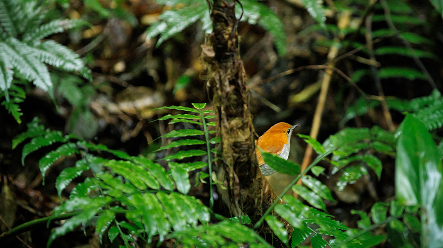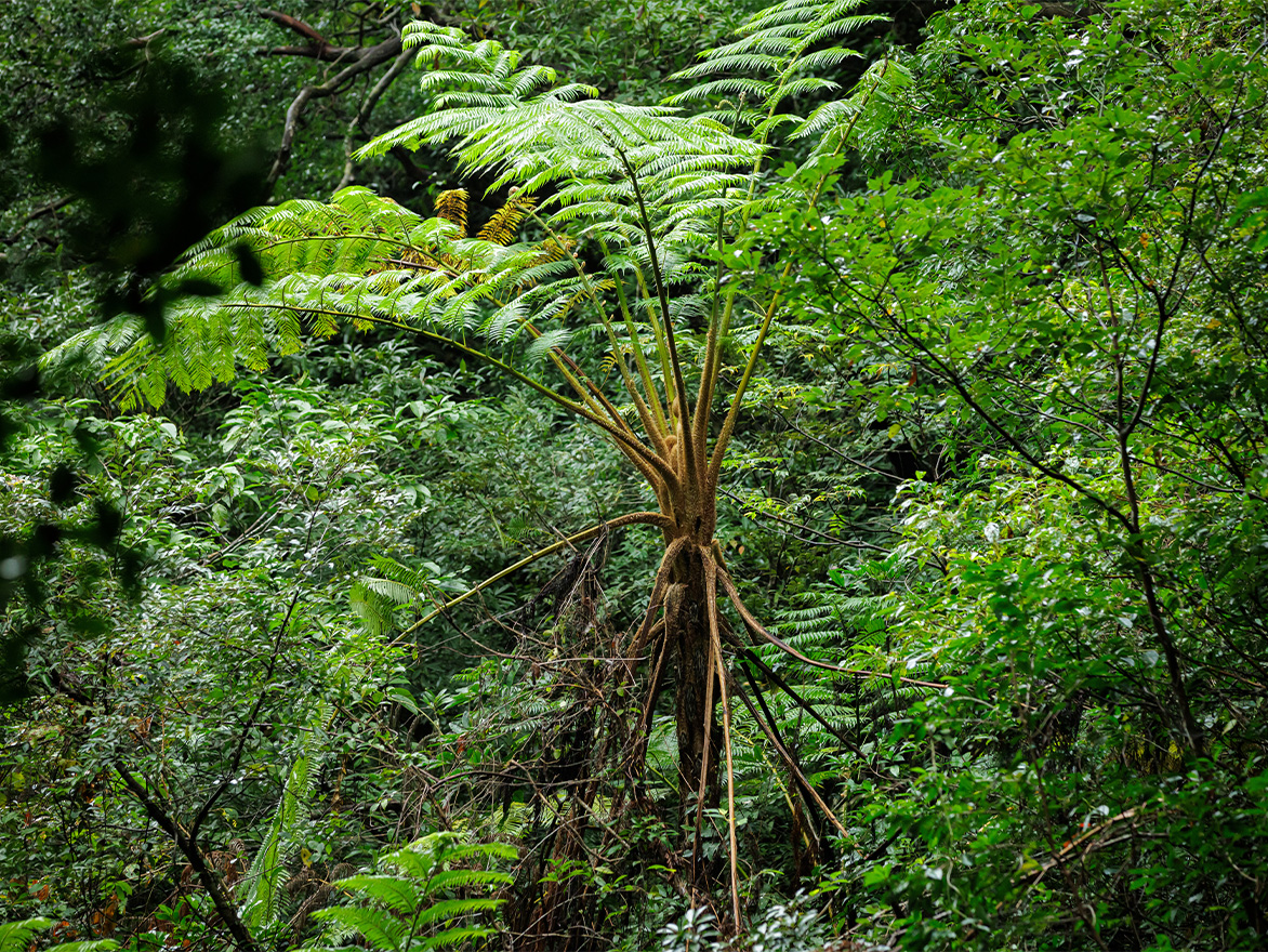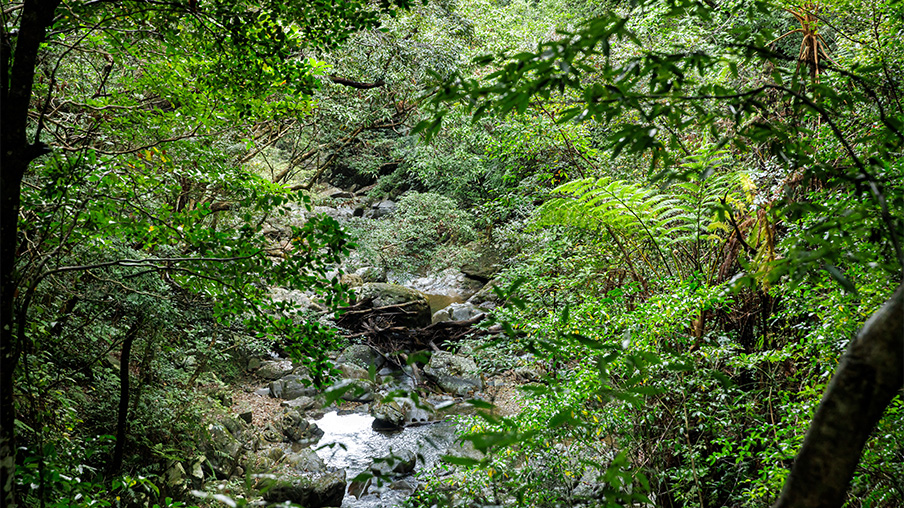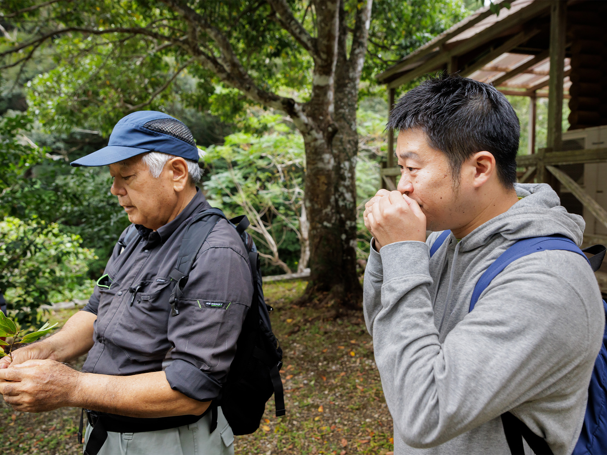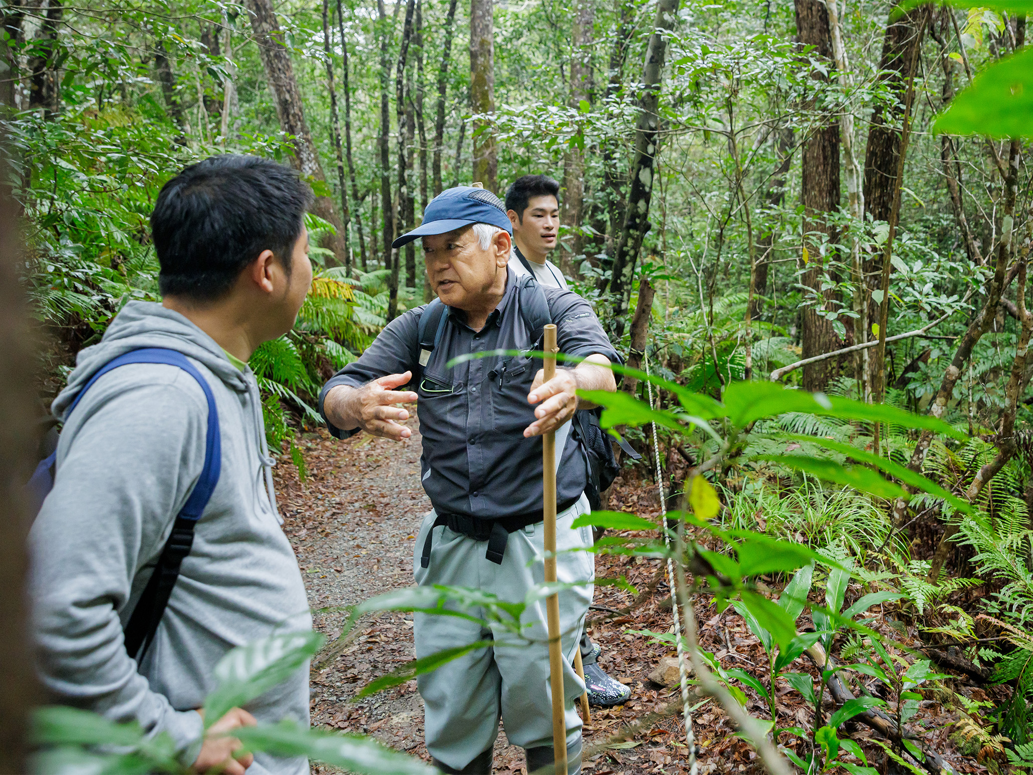 「蒸し暑い夏が終わり、少し気温が下がってくるとフィールドワークには最適の季節です。比地大滝は高さが25.7mと、本島一のスケールです。滝までのトレッキングコースは適度なアップダウンや吊り橋もあるので、さまざまな角度から自然の景観や野生動物の息吹を感じることができます。道中にはヒカゲヘゴやツワブキ、シシアクチ、フウトウカズラなどの植物を見ることができます。綺麗な緑色のアオミオカタニシ、美しいリュウキュウハグロトンボなどの昆虫たち、運が良ければヤンバルクイナやノグチゲラやホントウアカヒゲなど、この地域固有の野鳥も見ることができるでしょう。現在、鳥類は世界で約9000種類が確認されており、日本ではそのうち約640種、そのうちの約520種が沖縄で確認されています。海外では一生の間にどれだけの鳥を見ることができるか、バーディング(野鳥観察)を趣味にしている人がとても多く、野鳥を見るために沖縄へ来るゲストもたくさんいます。生活文化と自然が共存しているこの環境は、環境の多様性と生物の多様性がリンクする場所でもあるのです」